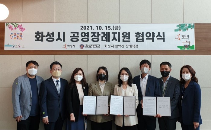 [로컬세계 고용주 기자]경기 화성시가 15일 화성시 함백산추모공원에서 함백산장례식장 운영 주체인 유치지역 주민지원협의체, 협성대학교와 ‘무연고 사망자 공영장례지원사업’ 업무협약을 체결했다고 밝혔다.