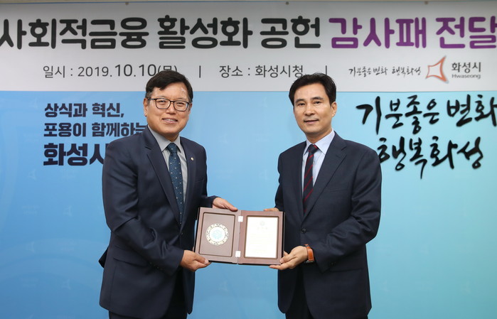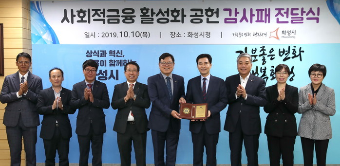 이날 시상은 서철모 화성시장이 발안신용협동조합과의 ‘사회적경제지원기금 유치 협약’을 통해 사회적경제기업에 안정적 금융을 지원함으로써 지역경제 발전과 신협의 위상을 높이는데 기여한 공로다.