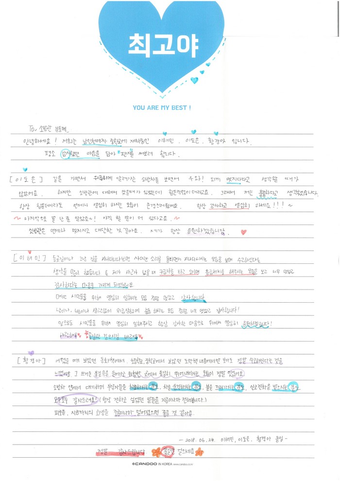 학생들은 평소 등굣길이나 생활하면서 마주하는 소방관의 활동에 감사하고 수고하신다는 내용을 적어 보내주면서 꽃길만 걸으라는 응원메시지도 함께 적어 보내주었다.