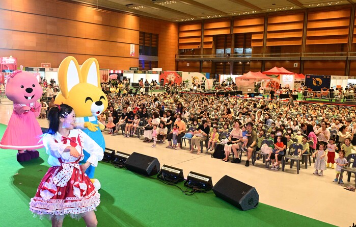 ▲ 18일, 한돈페스타 행사에서 어린이 관객들이 싱어롱쇼 무대를 즐기고 있다. 한돈자조금관리위원회 제공 |