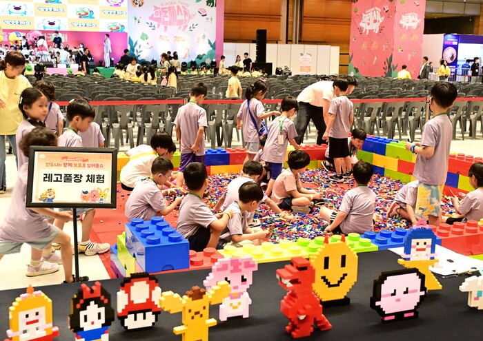 ▲ 어린이 관객들이 레고풀장 체험 프로그램을 즐기고 있다. 한돈자조금관리위원회 제공 |