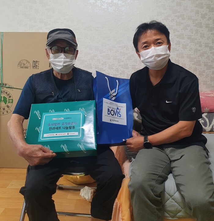 [로컬세계 부산=맹화찬 기자]부산지방보훈청은 7일 민족 고유의 명절인 추석을 맞아 nasmedia, KT그룹희망나눔재단과 함께 생활이 어려운 고령 국가유공자 어르신을 찾아 뵙고 '추석맞이 국가유공자 한과세트 나눔 활동' 위문을 실시했다.
