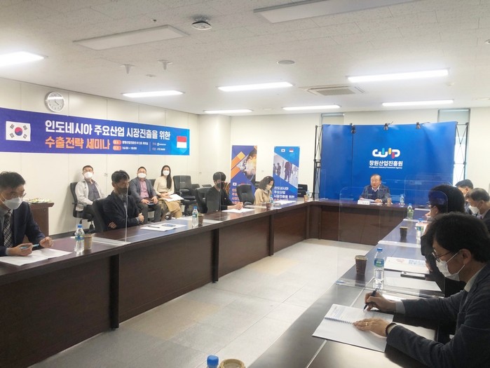 [로컬세계 한용대 기자]경남 창원시와 창원산업진흥원은 지난 21일 한·세계화상비즈니스센터 온라인상담장에서 창원시 기계 및 소비재분야 수출기업체 10개사와 함께 ‘2.7억만 인도네시아 거대시장 진출전략 세미나’를 자카르타 현지와 온라인으로 개최했다고 22일 밝혔다.