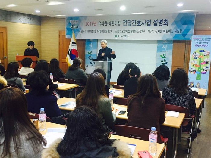 [로컬세계 주덕신 기자]오산시(시장 곽상욱)에서는 지난 14일 시청 물향기실에서 관내 유치원 및 어린이집 시설장 140명을 대상으로 유치원 및 어린이집 전담간호사업의 추진경과 및 2017년도 중점 추진방향에 대한 설명과 시설장들의 의견을 수렴하는 사업 설명회를 개최했다.