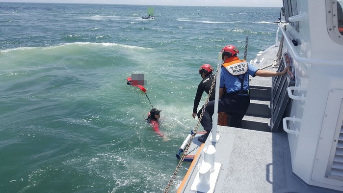[로컬세계 맹화찬 기자]부산해양경찰서(서장 박형민)는 11일 오후 12시 10분경 동백섬 인근 해상에서 A씨(48세, 남)와 B씨(14세, 남)의 딩기요트가 전복 되 표류중이라는 신고를 받고 출동해 구조했다고 밝혔다.