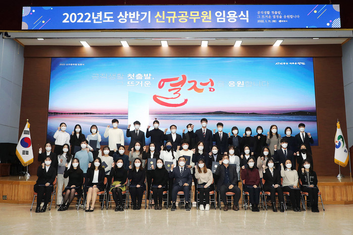 이날 행사는 임용장 수여, 신규 공무원 선서, 시장 환영인사 순으로 진행됐고, 거리두기를 감안해 오후 3시, 4시 30분 2회에 걸쳐 실시됐다. 허성무 시장 등 간부공무원들도 새내기 공직자의 새로운 앞날을 함께 축하했다.