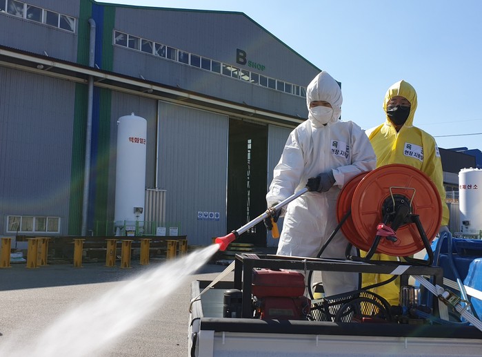 울산지역은 온산국가산업단지를 비롯해 울주군, 북구, 중구의 주요도로와 도서관, 보건소 선별 진료소등에서 예비군지휘관과 상근예비역 68명이 취약지역에 대한 방역작업을 실시했다.