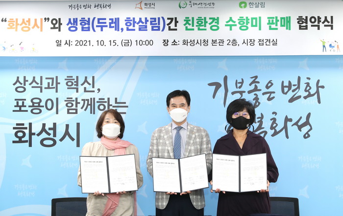 협약에 따라 화성시는 친환경 농산물 수향미를 안정적으로 생산‧공급하고 생협(두레, 한살림)은 온‧오프라인 유통망을 활용해 판매지원을 확대키로 했다.