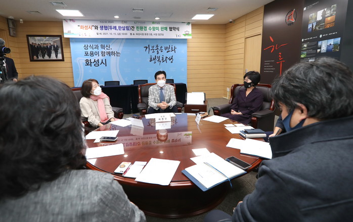 이날 화성시청 접견실에서 열린 업무 협약식에는 서철모 화성시장과 두레‧한살림 생협 대표 및 관계자 등이 참석한 가운데 진행됐다.