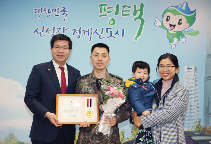 [로컬세계 주덕신 기자]경기 평택시는 15일 시청에서 고속도로 교통사고 현장에서 일가족 5명을 구조한 박철륜 상사에게 표창장을 수여했다.