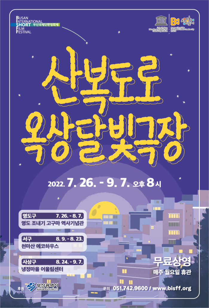 [로컬세계 부산=맹화찬 기자]부산시 영도구(구청장 김기재)에서 여름휴가 기간 달빛아래 즐기는 여름 밤의 시네마 천국이 열린다. 조내기 고구마 역사기념관 옥상에서 열리는‘2022 산복도로 옥상달빛극장’은 7월 26일부터 8월 7일까지, 2주간 열릴 예정이다.