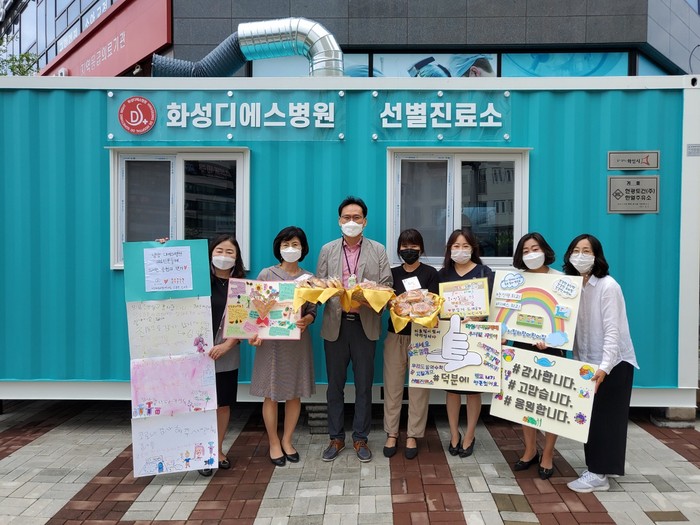 또한 이 중 시립동탄호수보듬이나눔이어린이집, 시립수노을어린이집, 시립해솔뷰엘어린이집, 시립서연어린이집, 시립서부복합어린이집, 시립하랑어린이집은 아이들이 만든 빵 80세트와 응원편지를 동탄보건소, 화성디에스병원 선별진로소에 후원해 의료진들에게 고마움을 전했다.