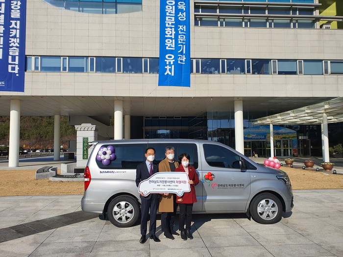[로컬세계 한세혁 기자]전남도자원봉사센터(이사장 김형석)는 최근 남해종합건설이 지역사회 봉사활동에 쓰일 업무용 차량을 기증했다고 19일 밝혔다.