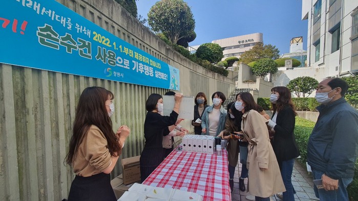 직원들은 일상 속 탄소중립 기후행동을 실천하고 인증하는 시간을 가졌다. 시는 손 씻고 나서 쉽게 사용되는 종이타월 대신 청사 내 손수건 사용하기로 연간 탄소 8톤을 감축할 수 있다는 내용을 알리고 손수건 사용하기에 동참할 것을 홍보했다.