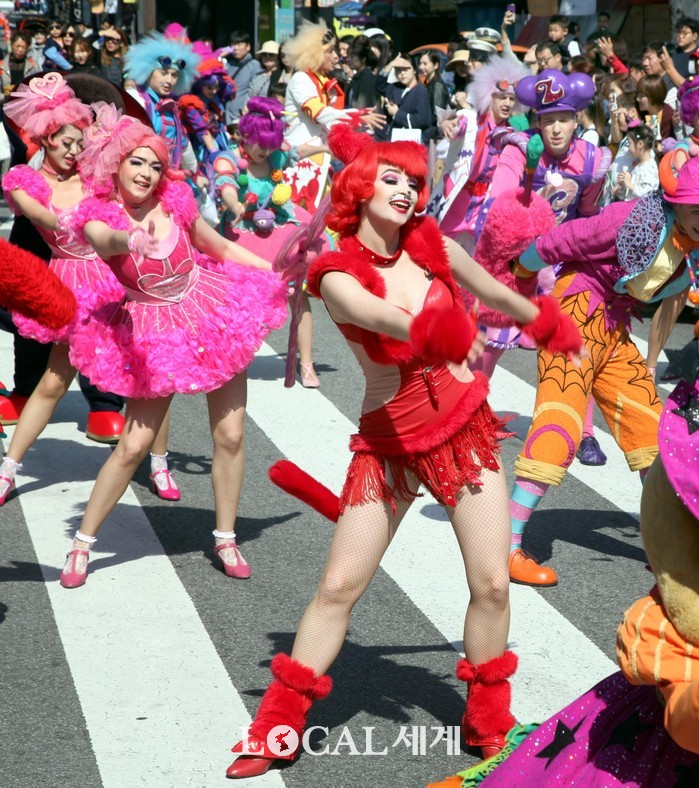 13일 롯데월드 어드벤처(대표 박동기)가 서울 종로구 대학로 ‘차 없는 거리’ 행사에서 큐티 할로윈 콘셉트의 ‘해피 할로윈 파티 퍼레이드’를 선보이고 있다. 롯데월드 어드벤처는 가을 시즌 축제 '호러 할로윈 The Invitation'를 알리기 위해 이번 행사를 마련했다.
