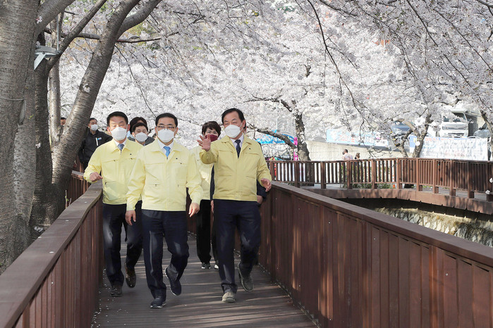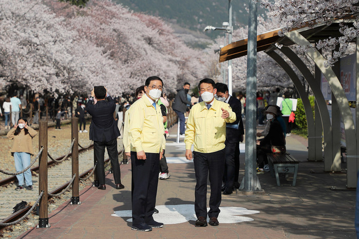 이날 허 시장은 경화역과 여좌천 일대를 방문해 직접 안심콜에 전화를 걸어 입장하는 것을 시작으로, 상춘객들의 마스크 착용 및 실외 사회적 거리두기 수칙 점검 등 방역수칙준수 여부에 대한 사항을 철저하게 점검했다. 인근 주민들의 불편을 최소화하기 위해 현장 곳곳도 살펴봤다.