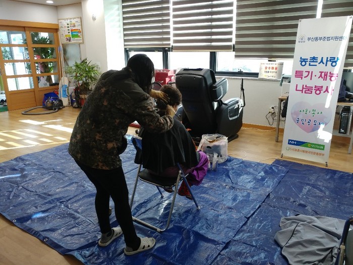 이번 사업은 설을 앞두고 염색과 커트 등 머리를 단장하고 싶지만 고령과 노환으로 거동이 불편하여 미용실 방문이 쉽지 않은 마을 어르신들을 위해 부산농협중앙회와 부산 기장군 소재 월평마을에서 부산동부준법지원센터에 국민공모제를 신청하여 실시하게 되었다.