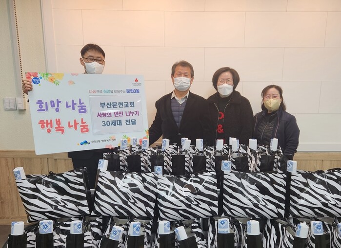 부산문현교회는 매년 신도들의 후원으로 추운 겨울에 건강을 잃지 않도록 반찬(국 포함 6종)을 준비했고, 문현3동 지역사회보장협의체 위원들이 홀로 어르신과 장애인 30세대에 방문 전달했다.