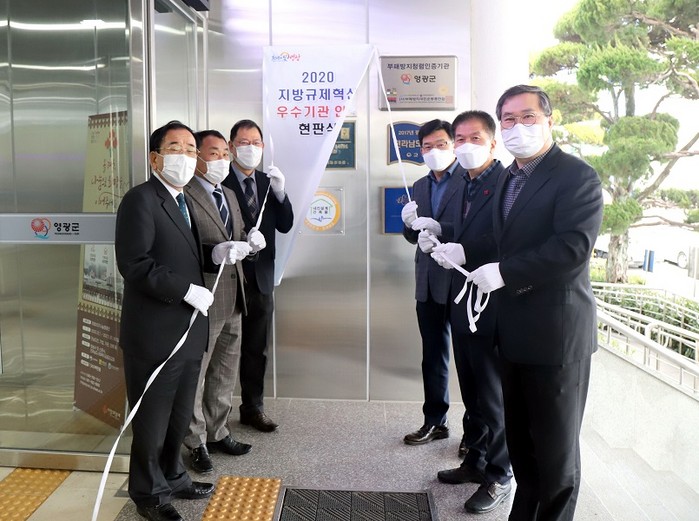 영광군은 지난해 지방규제 혁신 우수기관으로 인증되어, 재정인센티브 특별교부세 1억 원을 받았고 앞으로 2022년까지 행정안전부 지방규제혁신 우수기관 자격이 주어지게 된다.