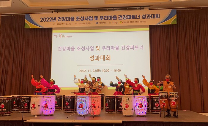 [로컬세계=박상진 기자]경북 의성군 늘품 난타동아리는 경북도와 통합건강증진사업지원단이 주최한 2022년 건강마을 조성사업 및 우리마을 건강파트너 합동성과대회에서 식전 행사로 축하공연을 선보였다.