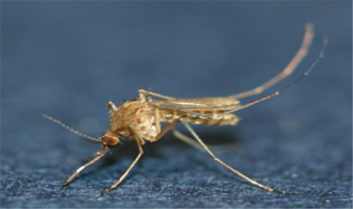▲작은빨간집모기. 약 4.5mm의 소형모기로 전체적으로 암갈색을 띠고 뚜렷한 무늬가 없으며 주둥이의 중앙에 넓은 백색띠가 있다. |