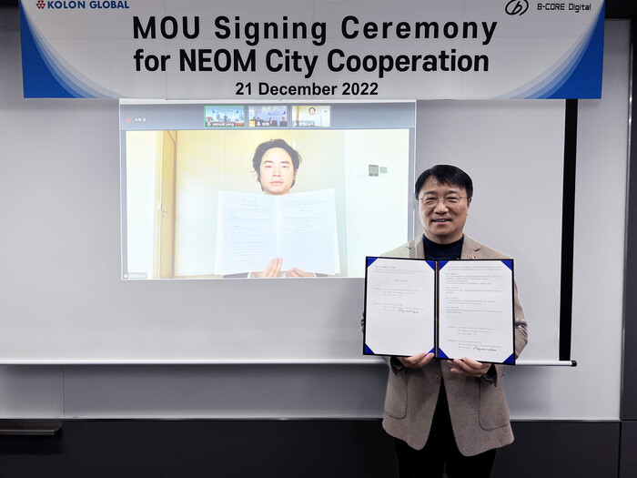 코오롱글로벌 김정일 대표이사 사장은 “이번 업무협약은 단일 사업에 대한 업무 협력이 아닌 중장기적 사업 추진 내용을 포함하고 있어 그 의미가 크다“며 “단순한 비즈니스 융합을 넘어 미래 건축기술을 구현하고 네옴시티 등 관련 사업 분야에 진출하기 위해 적극 힘쓰겠다“고 말했다.