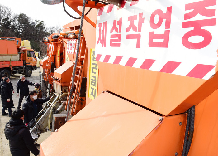 굴착기, 그레이더, 제설삽날 장착 차량 등 제설 차량 90대와 염화칼슘 4709t, 친환경 제설제 1150t, 소금 924t 등 제설자재를 확보했다.