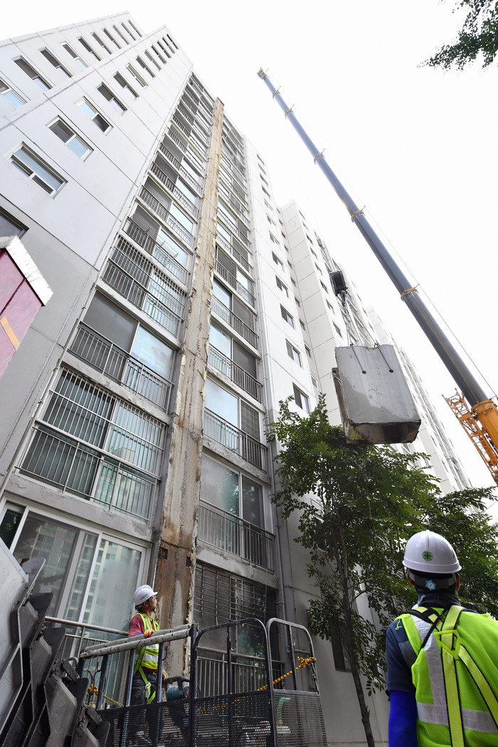 A아파트단지 환기 구조물 탈착(1개 동) 사고는 지난 18일 오후 일어났다. 수원시는 전문가들과 함께 정밀안전진단을 했고, 전문가 의견에 따라 환기 구조물 철거를 결정한 바 있다.