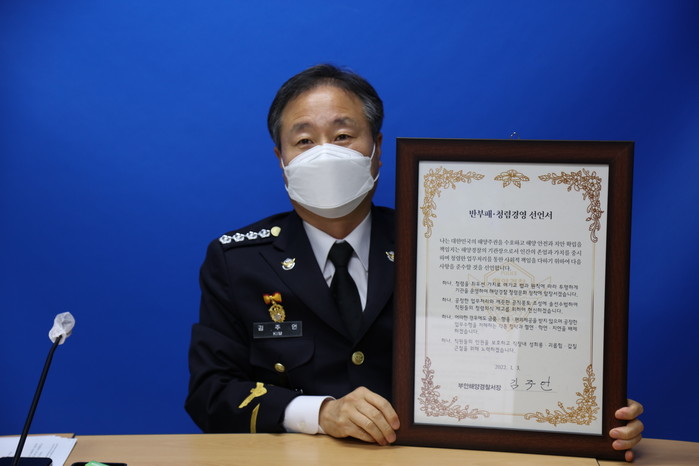 [로컬세계 김경락 기자]전북 부안해양경찰서(서장 김주언)는 임인년 새해 첫 회의에서 2022년 반부패 청렴경영 선언식을 개최했다고 3일 밝혔다.