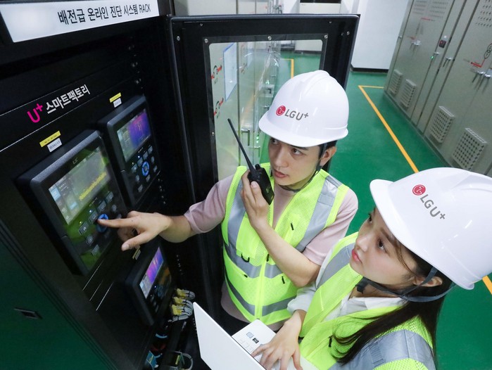 ▲LG유플러스는 16일 오전 온라인 기자간담회에서 ‘U+스마트팩토리’ 솔루션을 공개하고 향후 사업방향을 설명했다. 사진은 작업자가 LG유플러스의 인천 간석운영센터에 설치된 배전반진단 솔루션을 이용하는 모습. |