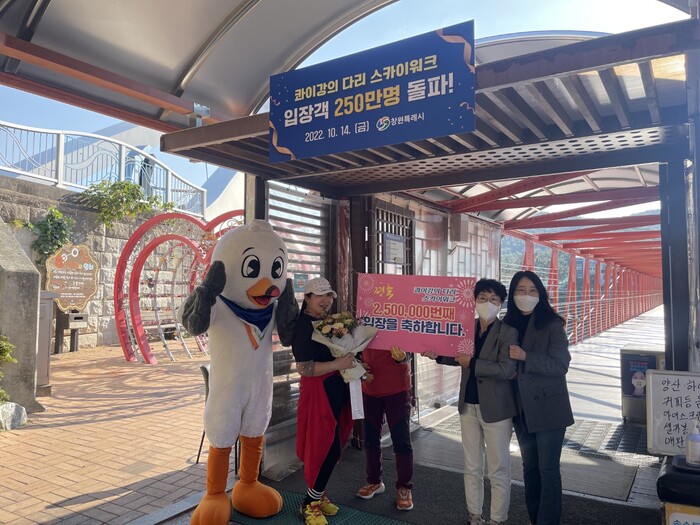 이날 시 관광과 관계자 10여 명이 참석한 가운데 스카이워크 250만 번째 입장객을 축하하는 깜짝 이벤트를 벌였다.