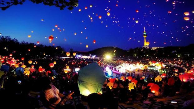 | ▲지난 30일 대구 두류공원 야구장 일원에서 시민들이 날린 풍등이 장관을 이루고 있다. |