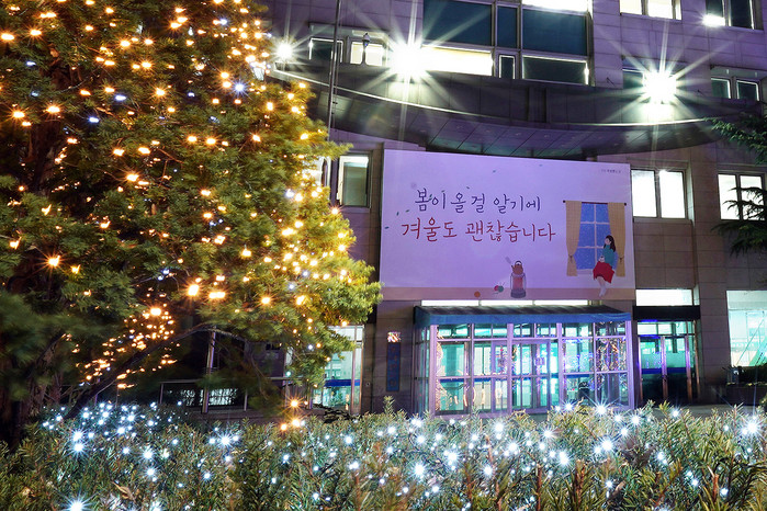 ▲동대문구가 겨울을 맞아 구청 정문 희망글판을 새 단장했다.(동대문구 제공) |