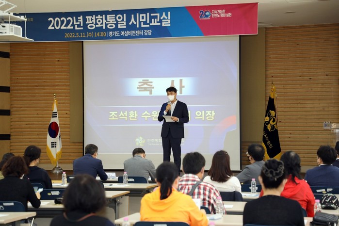 [로컬세계 김병민 기자]경기 수원특례시의회는 조석환 의장이 11일 경기도 여성비전센터에서 열린 민주평통 수원시협의회 주관‘평화통일 시민교실’에 참석했다고 밝혔다.