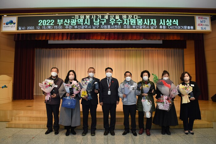 [로컬세계 부산=맹화찬 기자]15일 부산 남구청 대강당에서 '2022년 부산시 남구 우수 자원봉사자 시상식 및 자원봉사리더 양성교육이 개최됐다.