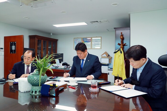 [로컬세계=박상진 기자]강원 태백시(시장 이상호)는 30일 강원남부지식재산센터, 장성중앙시장조합과 전통시장 공동브랜드 개발 지원사업 업무협약식을 개최했다.