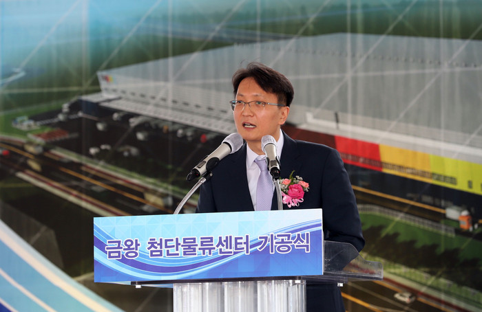| ▲박대준 쿠팡 신사업부문 대표가 24일 열린 ‘쿠팡 금왕 첨단물류센터 기공식’에서 인사말을 하고 있다. 새롭게 설립되는 쿠팡 금왕 첨단물류센터는 2021년 8월 완공 예정이다. |