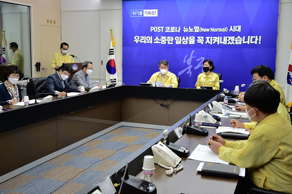 ▲변성완 부산시장 권한대행이 지난달 14일 부산 북구청사에서 해뜨락요양병원 코로나 집단 발병 관련, 관계자 긴급회의를 개최하고 있다. 로컬세계 자료사진 |