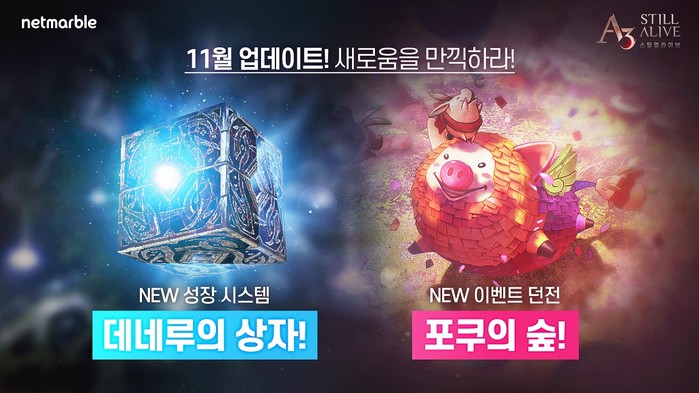 넷마블은 이번 업데이트를 기념해 ‘포쿠의 숲’ 이벤트 던전을 추가했다. ‘포쿠의 숲’은 파티원들과 난폭해진 포쿠들을 물리치는 이벤트 던전으로 총 20개의 난이도로 이뤄져 있으며 매일 한 단계씩 새로운 난이도를 개방할 수 있다. 포쿠의 숲을 완료하는 등 다양한 일일 미션을 완료 시 160레벨 장비 상자를 포함한 다양한 보상을 획득할 수 있는 ‘포쿠 대모험 이벤트도 함께 열린다. 풍성한 보상을 획득할 수 있다.