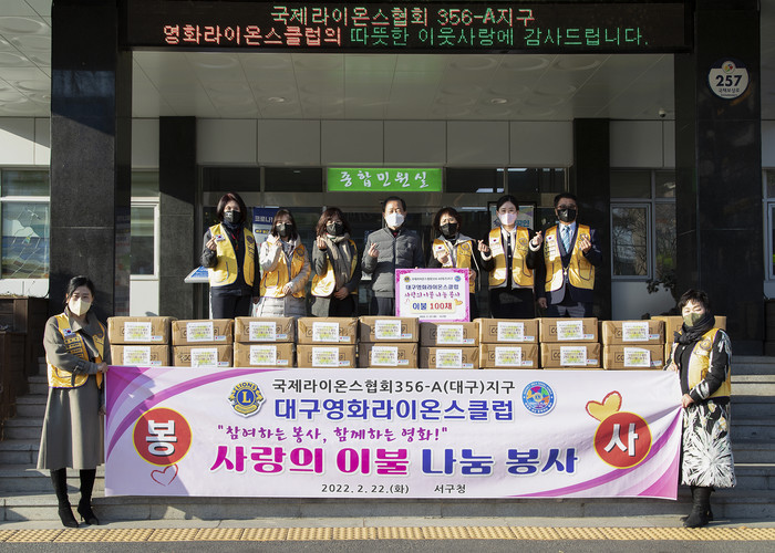 [로컬세계 박세환 기자]대구 서구 영화라이온스클럽은 지난 22일 서구청을 방문해 이불매트 100채 기탁 전달식을 가졌다.