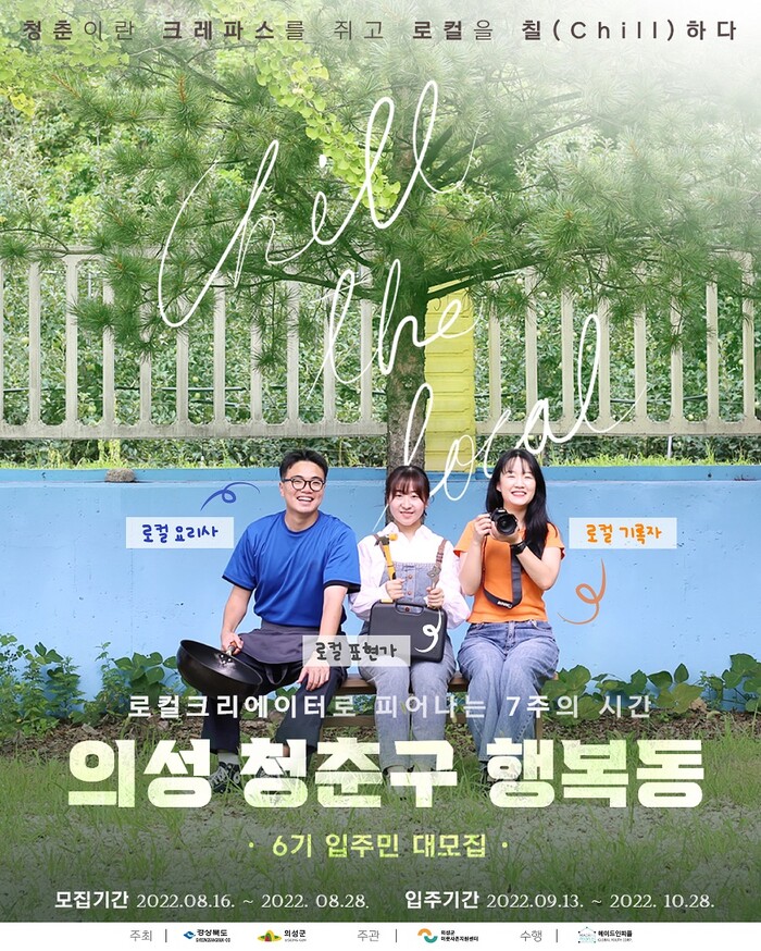 [로컬세계=박상진 기자]경북 의성군은 ‘도시청년 이웃사촌마을 살아보기’ 프로그램인 ‘청춘구 행복동’ 6기 참여자를 오는 28일까지 모집한다고 19일 밝혔다.