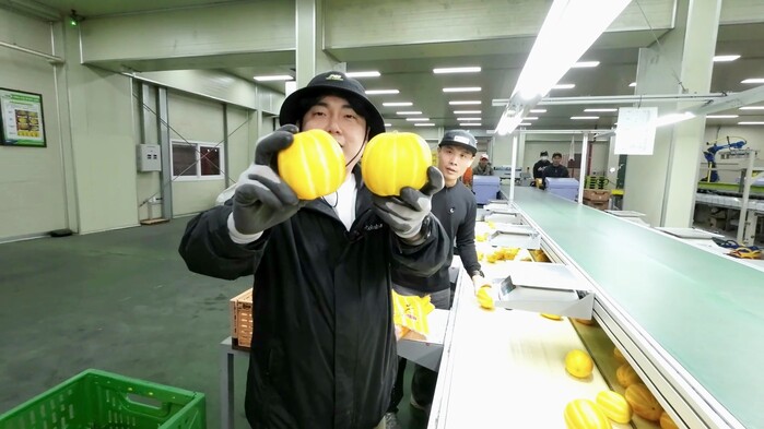 ▲ 선남농협 농산물산지유통센터에서 비정형과 참외를 선별하는 직원들이 사진을 찍고 있다. 농협 제공 |