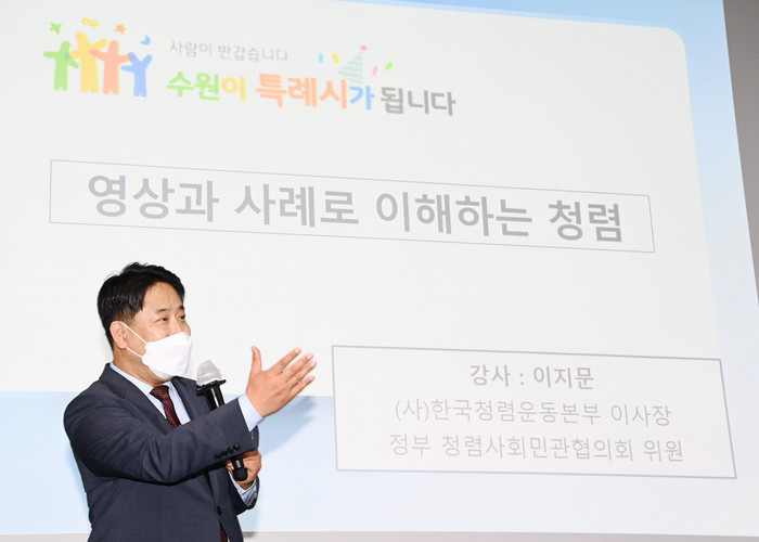 수원시 소속 4급 이상 공직자 30여 명을 대상으로 한 이날 교육은 시청 중회의실과 수원 iTV(수원인터넷방송) 홈페이지에서 대면·비대면 병행 방식으로 진행됐다.