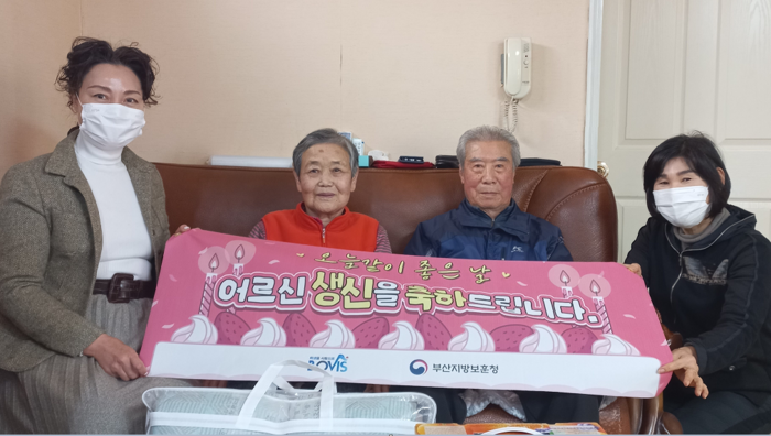 [로컬세계 부산=맹화찬 기자]부산지방보훈청(청장 전종호)은 18일 1월중 생신을 맞이하신 재가복지서비스 어르신 가정 2곳을 방문해 생신축하 위문을 실시했다고 밝혔다.