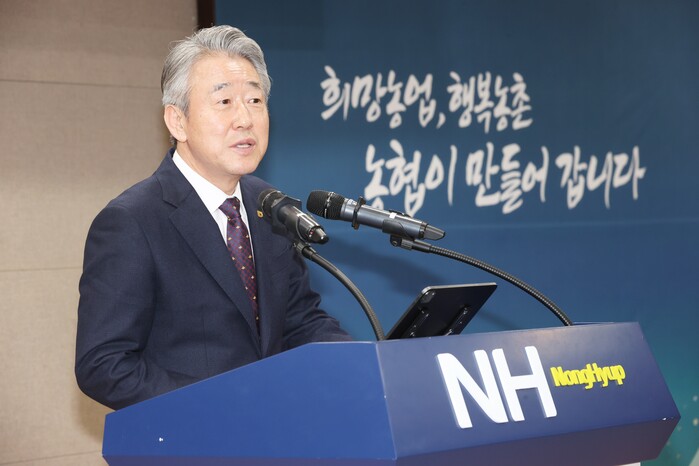 ▲ 강호동 농협중앙회장이 9일 농협중앙회 본관에서 열린 '2024년 농기계은행 선도농협협의회 정기총회'에서 농협의 역할을 강조하고 있다. 농협 제공 |
