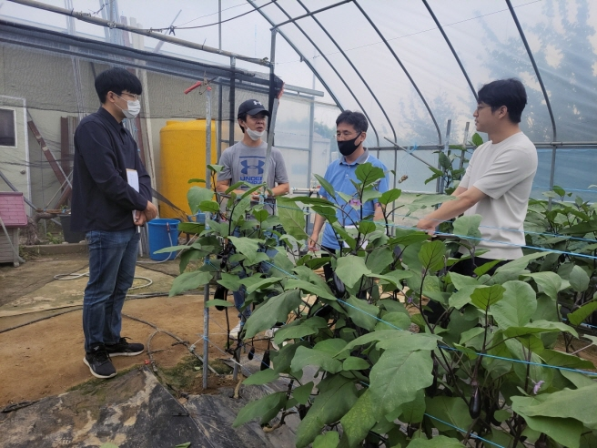 | ▲ 원예특작분야 지역적응 실증시험 과제 수요조사를 진행중인 모습. 김포시 제공 |