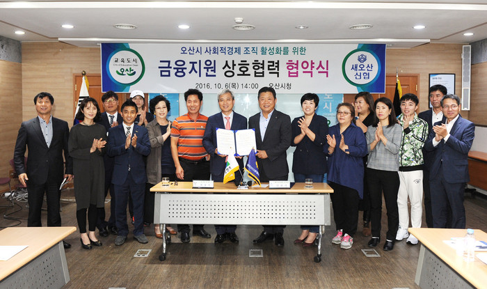 시는 6일 시청에서 새오산신용협동조합과 ‘오산시 사회적경제 조직의 활성화를 위한 금융지원 상호협력 협약식’을 가졌다.