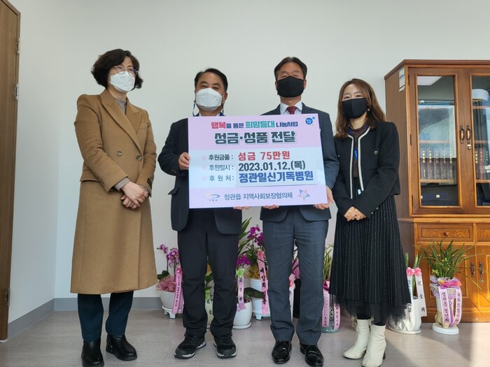 송영종 정관읍장(직무대리)은 “지역주민의 건강과 복지 향상을 위해 앞장서주시는 정관일신기독병원에 감사드린다”며 “도움이 필요한 가정에 나눔의 온기가 전달될 수 있도록 하겠다”고 감사를 표했다.