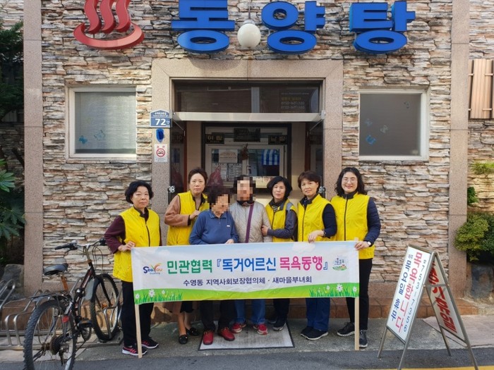 [로컬세계 맹화찬 기자]부산 수영구 수영동 지역사회보장협의체와 새마을부녀회가 힘을 합쳐 다음달까지 총 8회에 걸쳐 몸이 불편한 독거어르신들을 위한 목욕동행 사업을 진행한다고 6일 밝혔다.