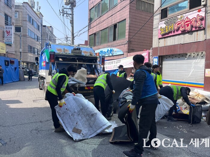남구 녹색환경과는 지난 27일 관내 대명복개로 16 일원(대명10동)에서 새봄을 맞아 집중 환경정비 활동을 펼쳐 각종 폐기물이 무단으로 방치되어 주민들이 크게 불편함을 겪던 지역의 골목길에 방치되고 있던 쓰레기(10톤). 폐타이어(90개)등을 건설과와 합동하여 수거하였으며 무단투기를 예방하기 위한 구조물을 설치하는 등 대대적인 환경정비 및 대청소 활동을 실시하였다.